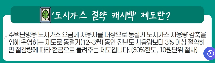 작년보다 3% 만 도시가스를 아껴서 사용하면 절약 캐시백을 받을 수 있는 제도가 있습니다.
